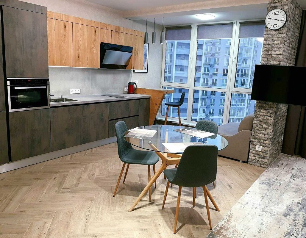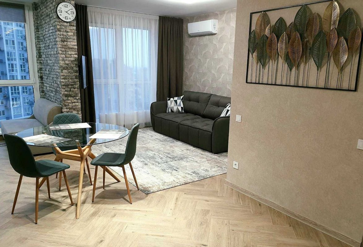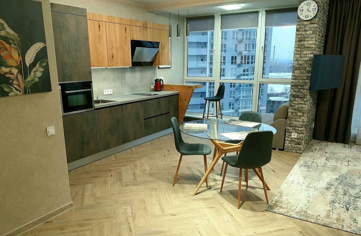 ЖК "Лебединый", улица Ревуцкого 40В. Дизайнерский ремонт, вся мебель новоя, квартира видовая расположена на 20 этаже, общая площадь 50м2, в квартире есть вместительная гардеробная, кухня укомплектована всей бытовой техникой, квартира полностью укомплектована мебелью, бойлер на 100л, в квартире установлен счетчик на отопление, кондиционер, стиральная машина с сушкой, имеется рядом с квартирой отдельно хозяйственная кладовка.
