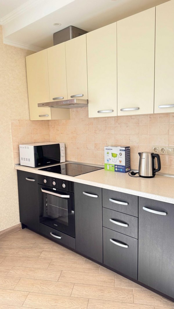 Укомплектована необхідними меблями і побутовою технікою (кондиціонер, посудомийна машина, варильна поверхня, НВЧ, фільтр для води, бойлер, холодильник, пральна машина).